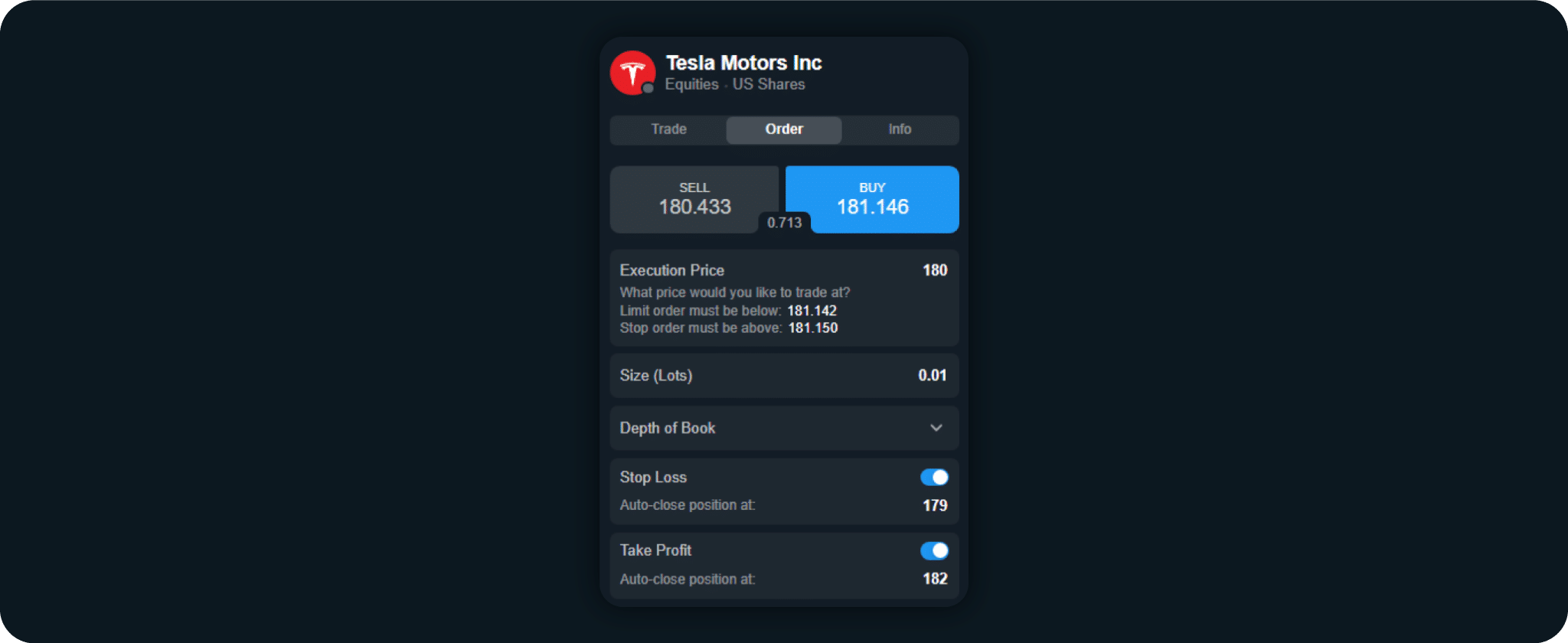 When placing a market order, you have the chance to add linked orders specific to that trade, meaning you can add Stop Loss & Take Profit levels.