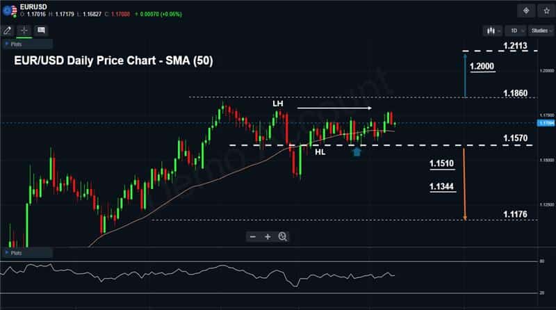 A successful daily close below 1.1570 could shift momentum toward the downside, potentially towards 1.1176. In this scenario, support levels at 1.1510 and 1.1344 should be closely watched.