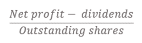 Earnings per share (EPS) consists of net income divided by the available shares. EPS is used as a metric to price equities, and provides a measure of the profitability of a company, divided by the number of shares outstanding. Analysts track the earnings per share to ensure they are investing in profitable businesses.